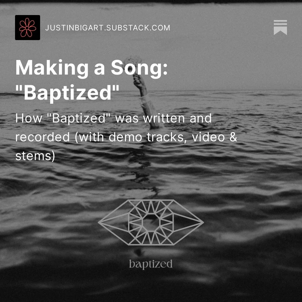 Baptized was produced and recorded over a 7-month period from August 2022 to February 2023 in Bozeman, MT and West Newbury, MA. Seven months for four minutes. It was my first time learning to settle into the experimentation and perfecting phases of creating art instead of rushing to the finish line. The pretty dopamine bullet that comes with getting the thing done and sharing it with the world. This new level of caring and detail felt uncomfortable and beyond my ability much of the time. I was truly out of my depth but with faith that, through the work, I'd finally learn to tread water.